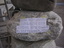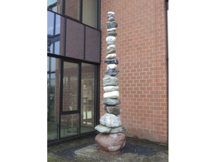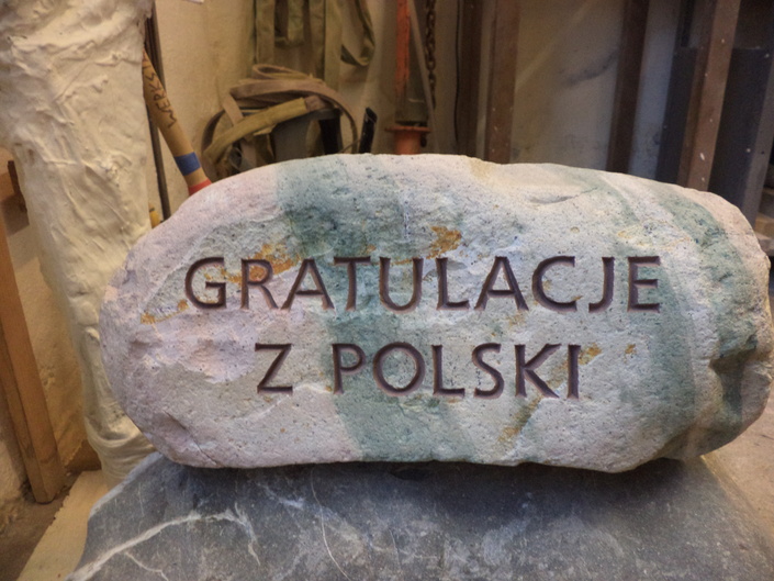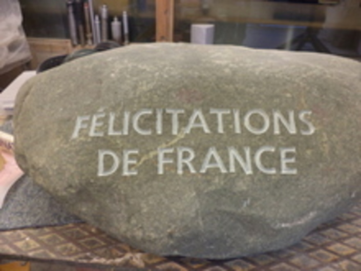 Steinskulptur mit Glückwünschen von allen weltweiten